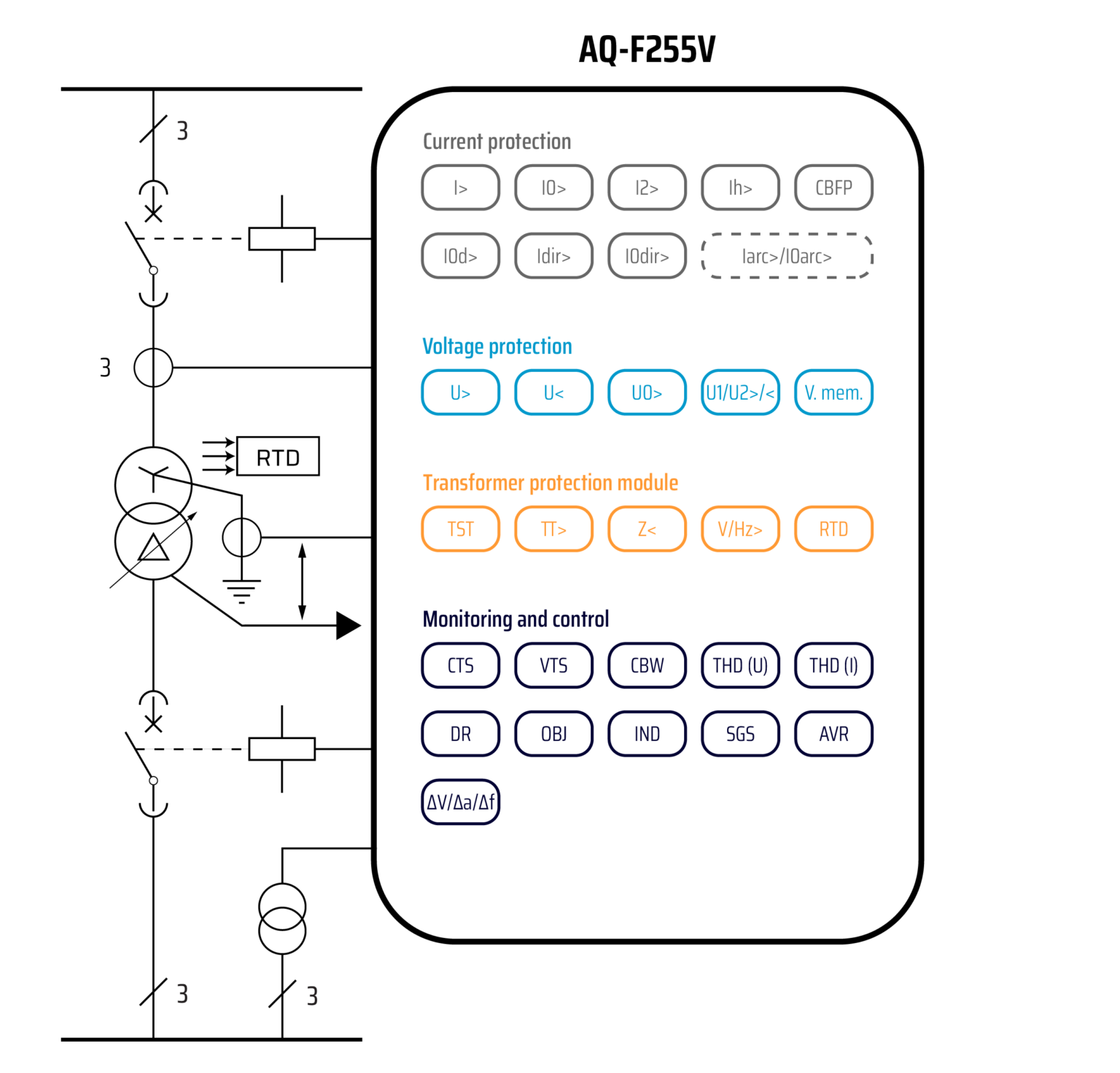 We offer four (4) variants of the AQ-F255 feeder protection device: A, R, S, and V.